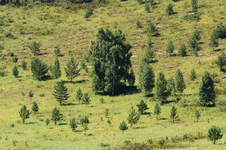 Beautiful trees on the slopes of the mountains in the Ulagan area of the Altai Republic.