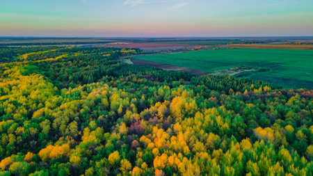 beautiful mixed forest with multi-colored foliage in the spring season, beautiful landscape with minimal processing, natural real colors