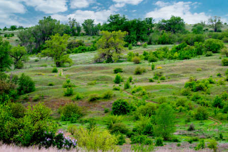 Morning summer forest-steppe landscape. Photo taken near the village of Arkaim, Russia