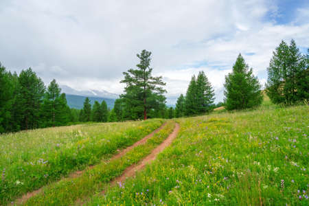 Early morning in the mountains of Altai Krai. Western siberia