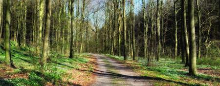 forest trees. nature green wood sunlight backgrounds. panoramic view