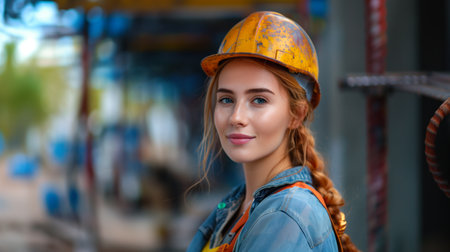 Portrait of a female construction worker on a construction site looking at the camera