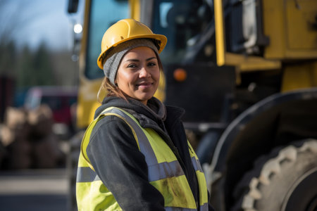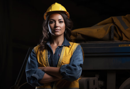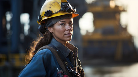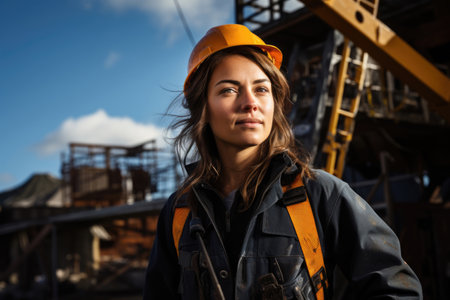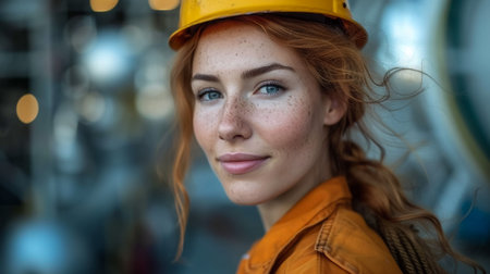 A professional female engineer, wearing a hard hat, demonstrating expertise and dedication to her engineering profession. AI generated.