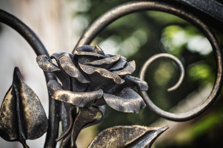 Beautiful forged decorative rose on a metal gate