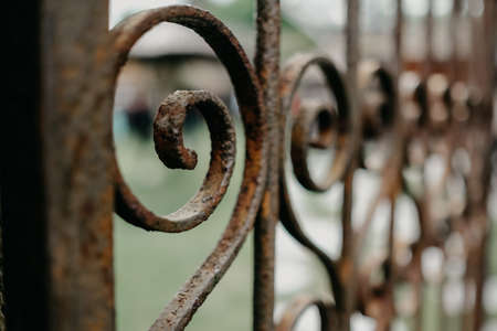 Old forged metal gate in the city