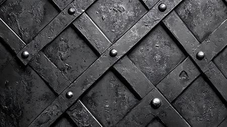 This image showcases a close-up view of a weathered metal surface featuring rivets, highlighting intricate textures ideal for design, industrial themes, or backgrounds.