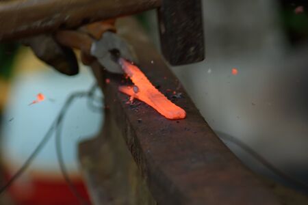 Blacksmiths work as forging forging on metal. The concept of making products from iron.