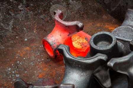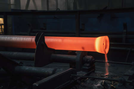 Red hot steel metal armature after molten steel casting. Background of the blacksmith and metallurgical industry.