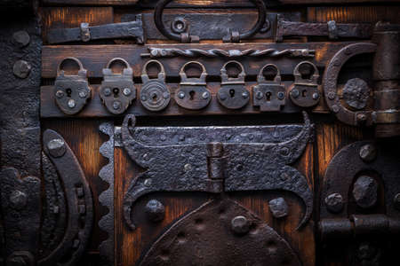 Decorative metal gate ornament. Antique iron door with classic ornaments.