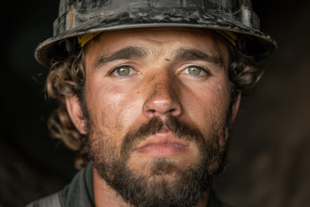 AI Generated. Ruggedly handsome miner worker his weathered face