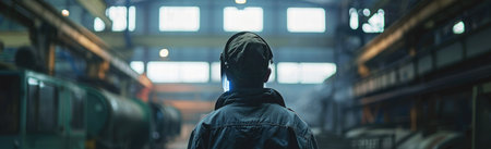Industrial worker in a large factory