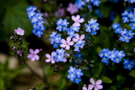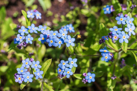 A bunch of Myosotis flowers growing in the garden