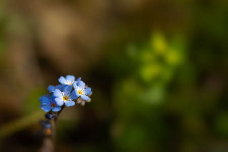 Blooming Scorpion grasses flower macro detail in Spring with copy space