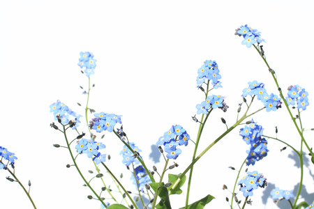 Spring is coming - bunch of forget-me-nots over white background.