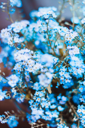 Real pretty delicate flowers of blue forget-me-nots like symbol of happy and purity