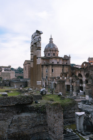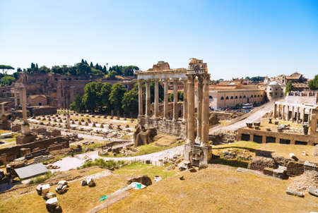 Roman Forum ruins in Rome, Italy. Italian ancient buildings and famous landmarks