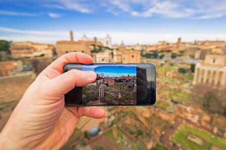 Rome Italy. Eternal city famous in the world. The historic center is on the UNESCO World Heritage List with many points of archaeological interest. View of the Roman Forum.