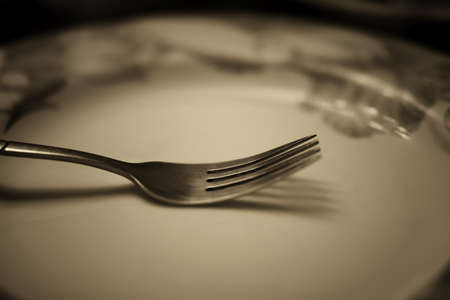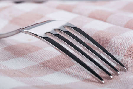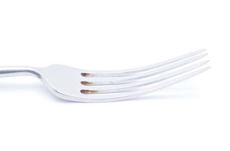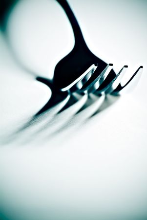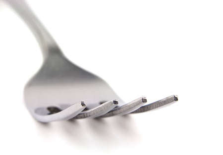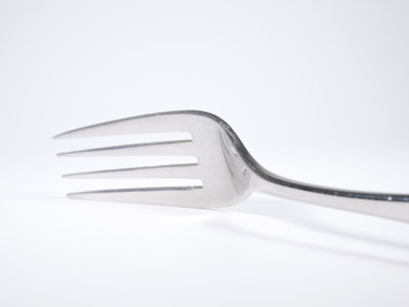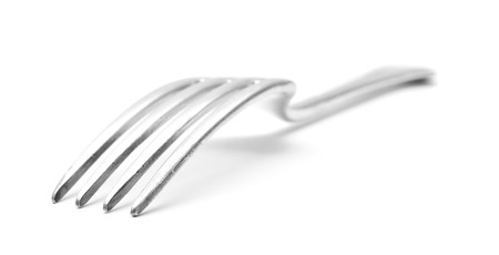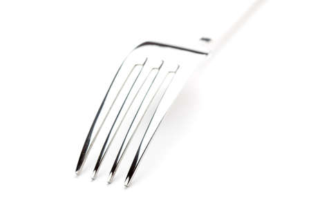 Close up of fork on white background. Selective focus and shallow depth of field.