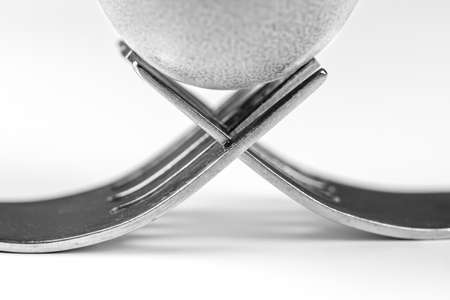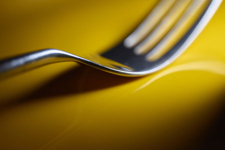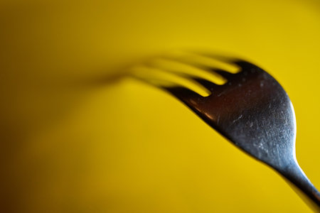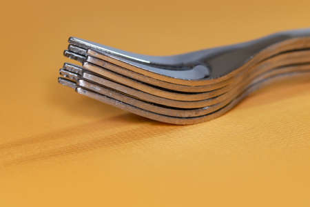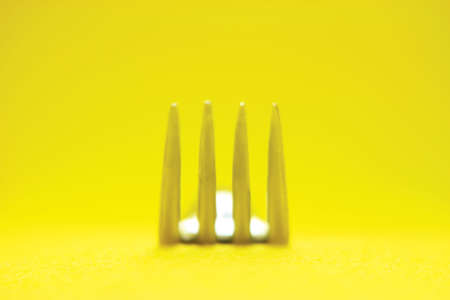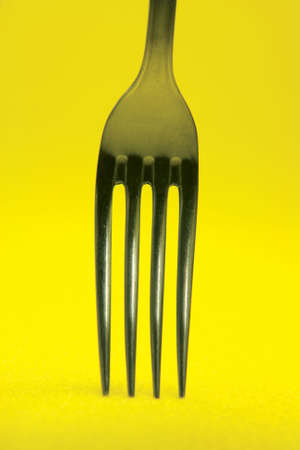 Macro Detail of Silver Fork Tines on Yellow Background. High quality photo