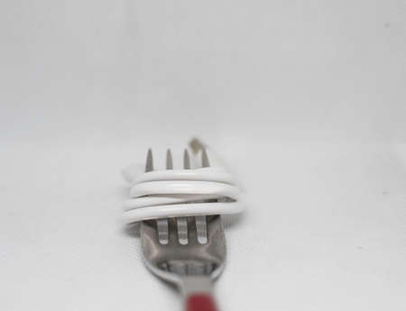 usb cable rolled up on a fork like spaghetti, ready to be eaten