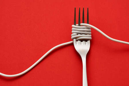 usb cable rolled up on a fork like spaghetti, ready to be eaten
