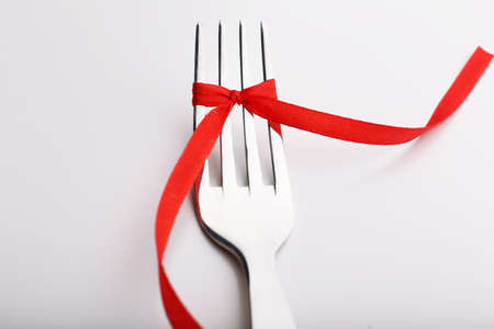Close up of fork on white background. Selective focus and shallow depth of field.
