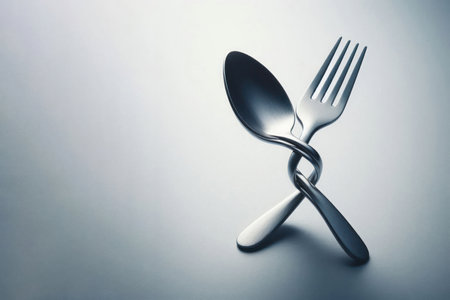 Silvery, minimalistic cutlery on a bright and even, colored background.