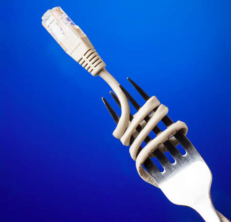 usb cable rolled up on a fork like spaghetti, ready to be eaten