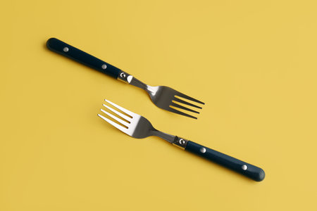 Stylish forks on yellow background