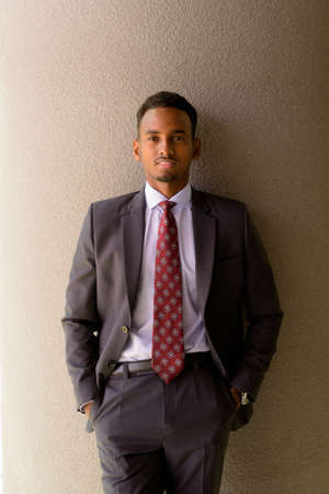 Portrait of African businessman wearing suit and tie outdoors in city