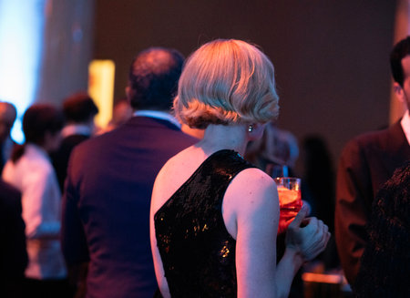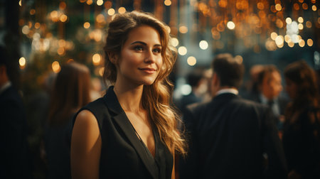 Luxury gala event with elegantly dressed attendees on the red carpet