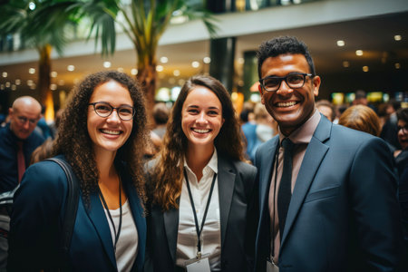 diverse group of business professionals standing confidently together in a corporate environment. Generative AI