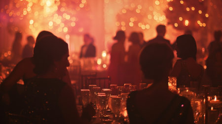 An elegant evening event, people in formal attire, beautifully decorated venue, capturing the essence of a sophisticated gathering. Resplendent.