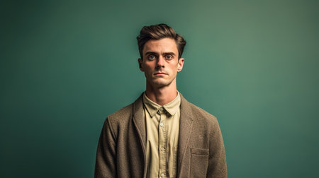 Portrait of a young man in a jacket on a green background