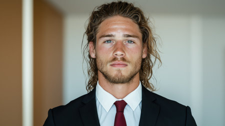 Handsome young businessman with curly hair