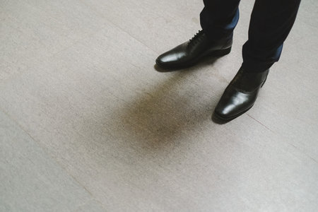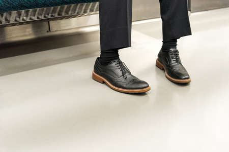 Man in black leather shoes, Tokyo, Japan. Copy space for text