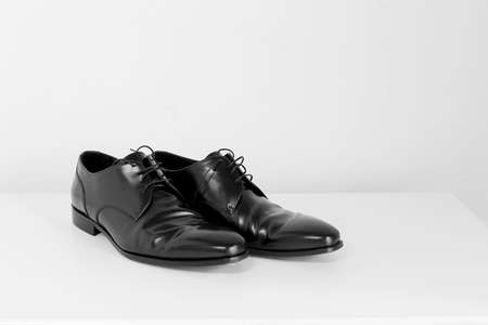Black man's shoes on a white background. Close-up.