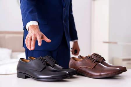 Young handsome businessman choosing shoes at home