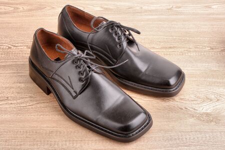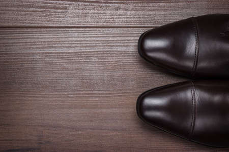 Man's shoes on wooden texture