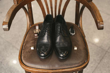 businessman clothes shoes, man getting ready for work,groom morning before wedding ceremony. Men Fashion