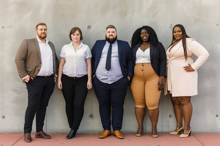 Plus-sized individuals in professional attire suitable for the workplace in office. Overweight people.