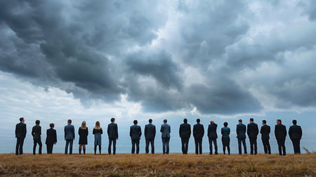 Conceptual queue of executives in line symbolizing career progress and ambition.