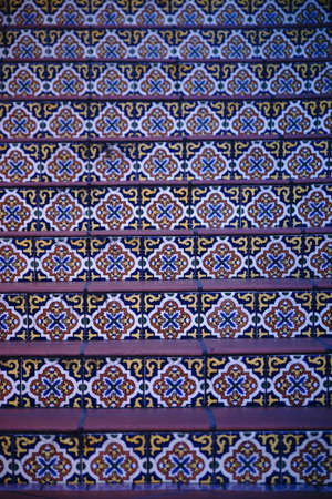 Ceramic tiles in Lisbon, Portugal. Decorative mosaic ceramic tiles.
