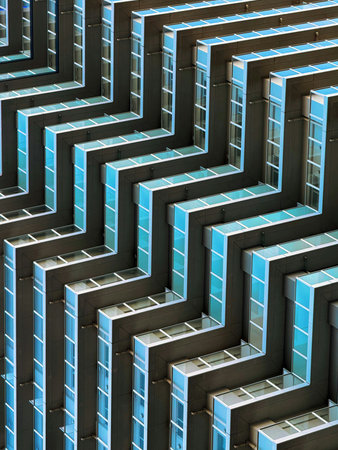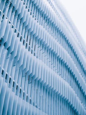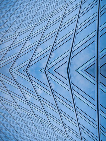Abstract close-up view of modern aluminum ventilated facade of triangles