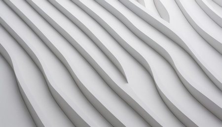 An abstract, monochromatic 3D landscape features smooth, high peaks and deep valleys resembling a wave pattern or topographic terrain. The grey, matte surface creates a futuristic and rhythmic design suitable for backgrounds.