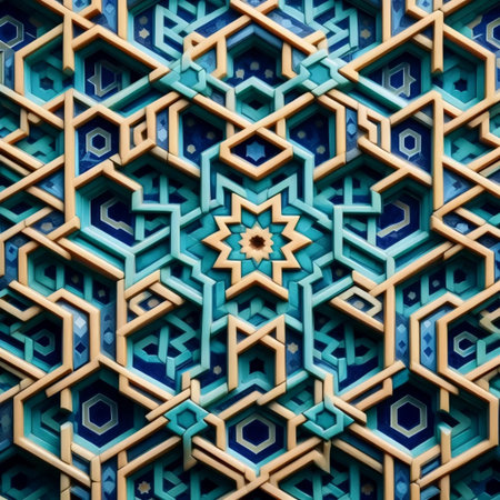 Exotic Moroccan tile background with intricate patterns, vibrant colors, and textured ceramic surfaces. The rich, cultural design adds an element of exotic beauty and craftsmanship to any scene