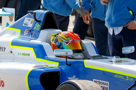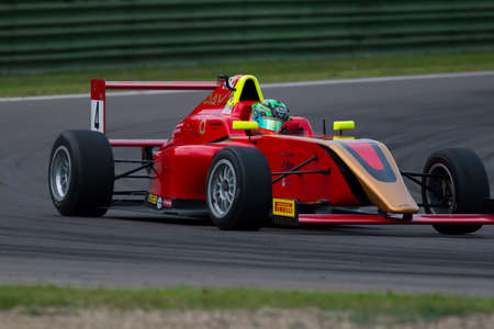 Misano Adriatico, Italy - April 10, 2016: A Tatuus F4 T014 Abarth of Jenzer Motorsport Team, driven by Meikup Jan-Erik, the Italian F4 Championship Powered by Abarth in Misano World Circuit, in Misano Adriatico, Italy.
