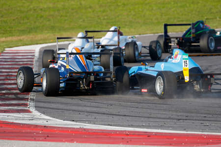 Misano Adriatico, Italy - April 10, 2016: A Tatuus F4 T014 Abarth of Torino Squadra Corse Team, driven by Iribarne Federico, the Italian F4 Championship Powered by Abarth in Misano World Circuit