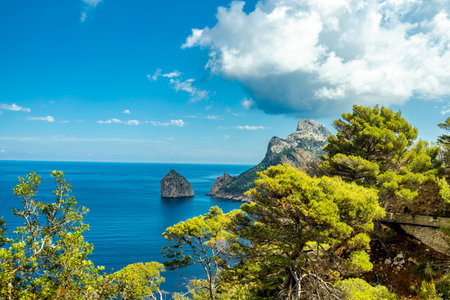 View from Mirador de Es Colomer, Peninsula de Formentor, Balearic Islands Mallorca Spain. Travel agency vacation concept.