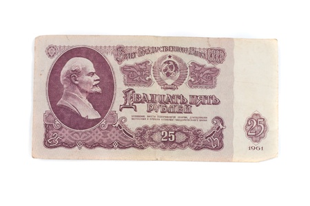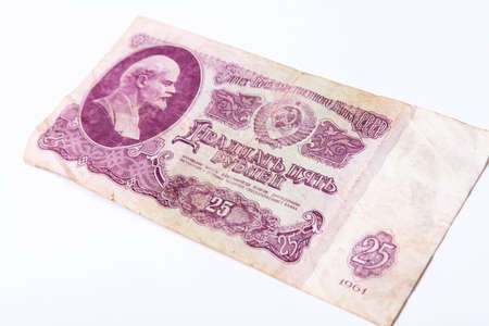 Twenty-five rubles, USSR money isolated on white background